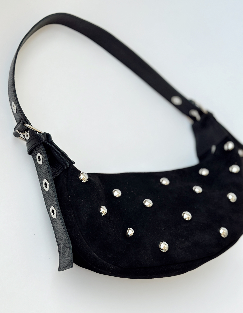 bolso tipo banano en gamuza